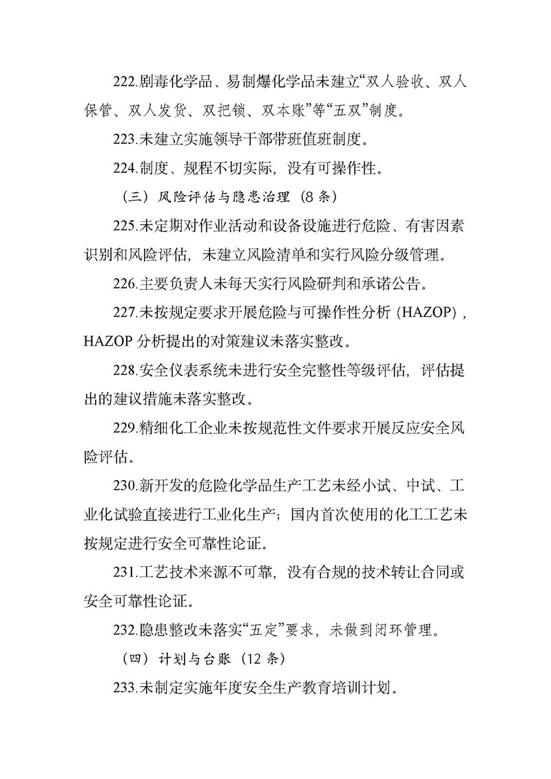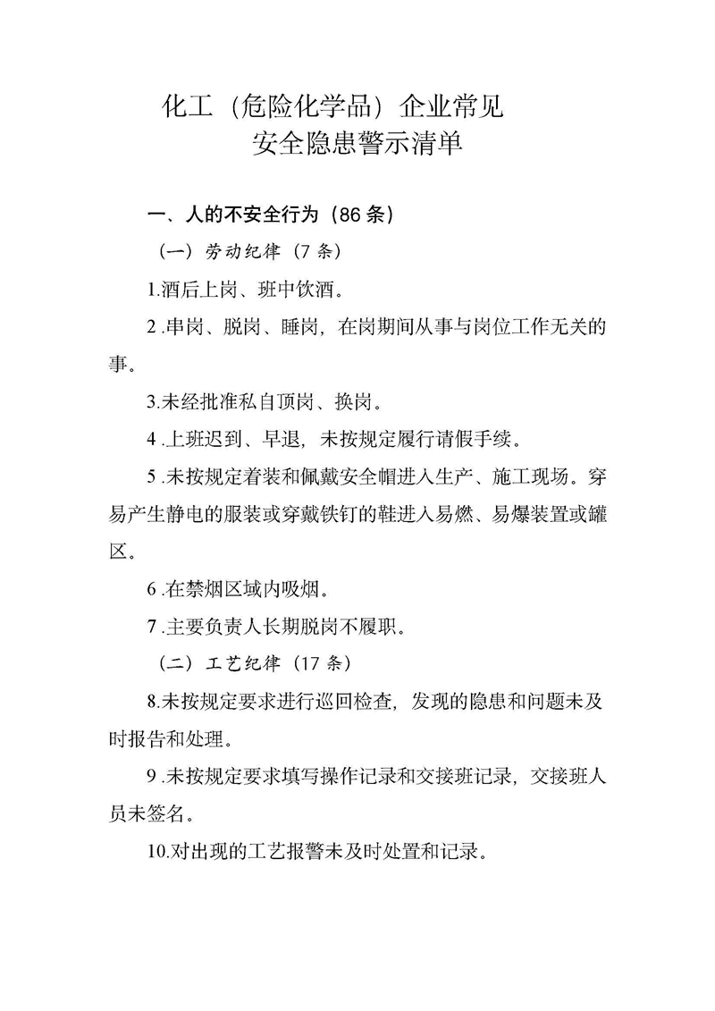常見安全隱患警示清單