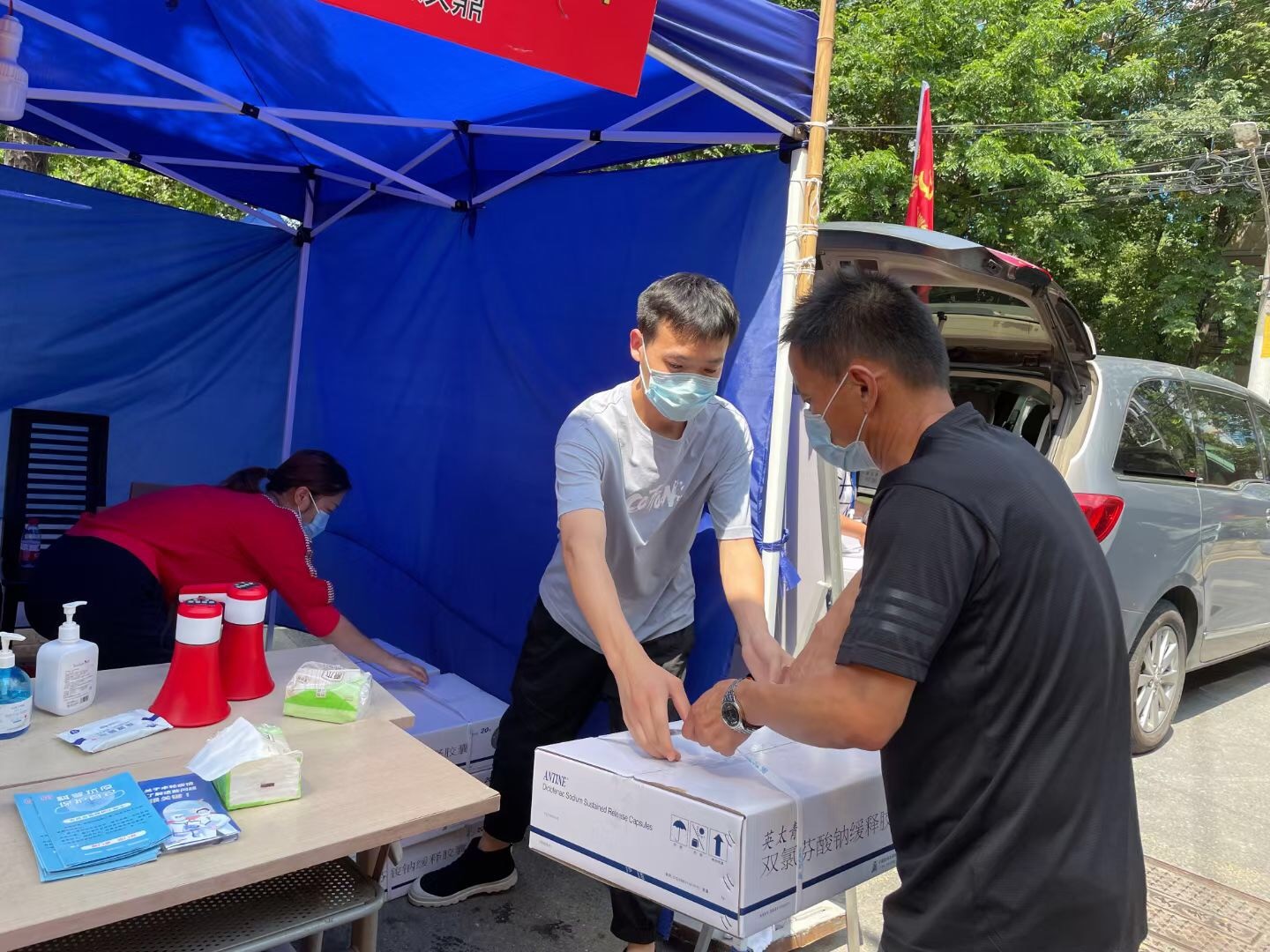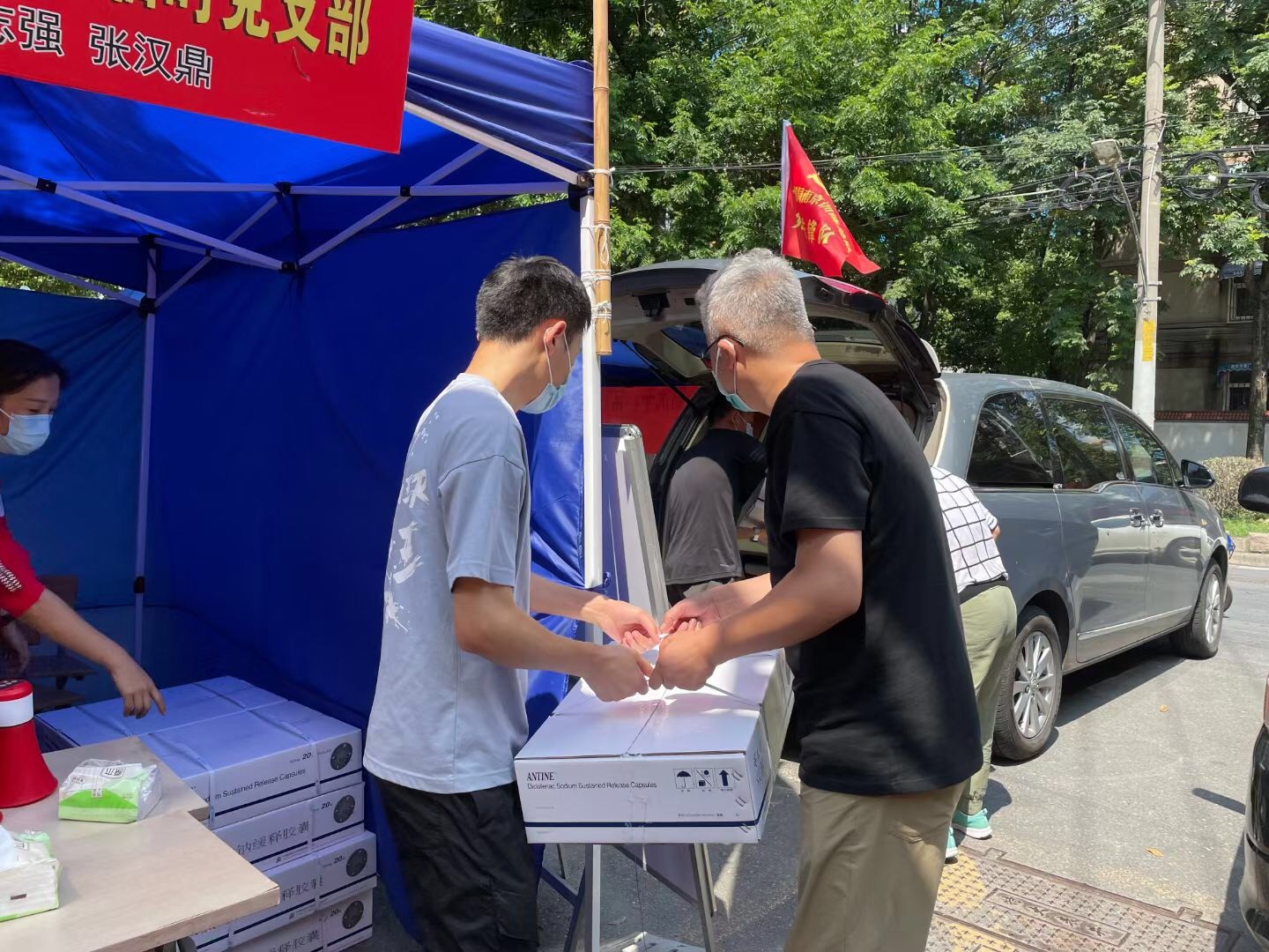 自南京疫情發生以來,廣大醫護人員、基層干部和志愿者冒著酷暑、臺風始終奮斗在抗疫一線,夙興夜寐,與病毒賽跑,令人感動和敬佩。為了表達對戰疫人員的真摯慰問和崇高敬意,8月6日下午,藥大制藥有限公司黨總支書記兼副總經理金立勇組織相關黨員同志,聚集了一批價值約6萬元的抗疫藥品,將其送至鼓樓區中央門街道工人新村隔離點、溧水區永陽街道核酸檢測點,用實際行動傳遞力量與溫暖。